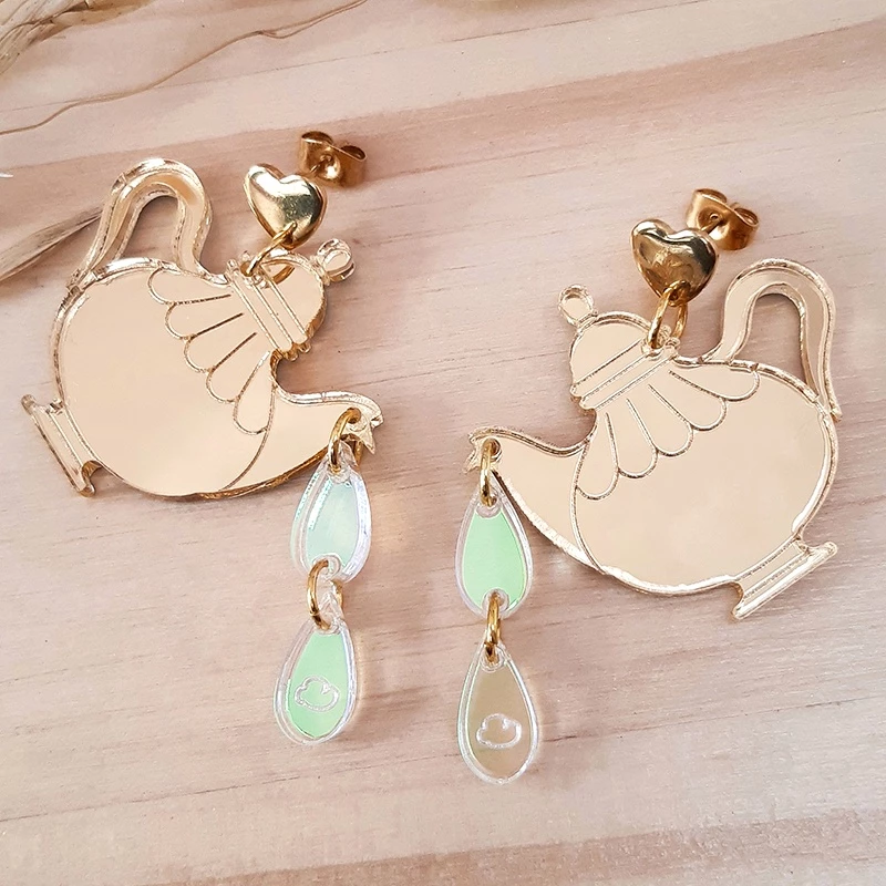 Matière : Acrylique / Attaches cœur en acier inoxydable doré à l’or fin (antiallergique)