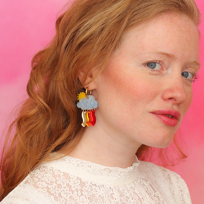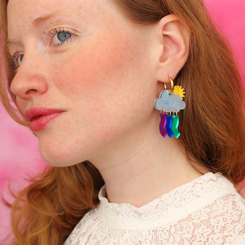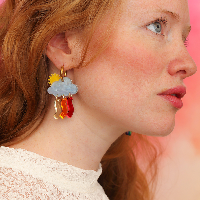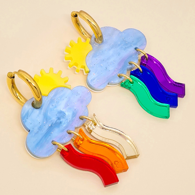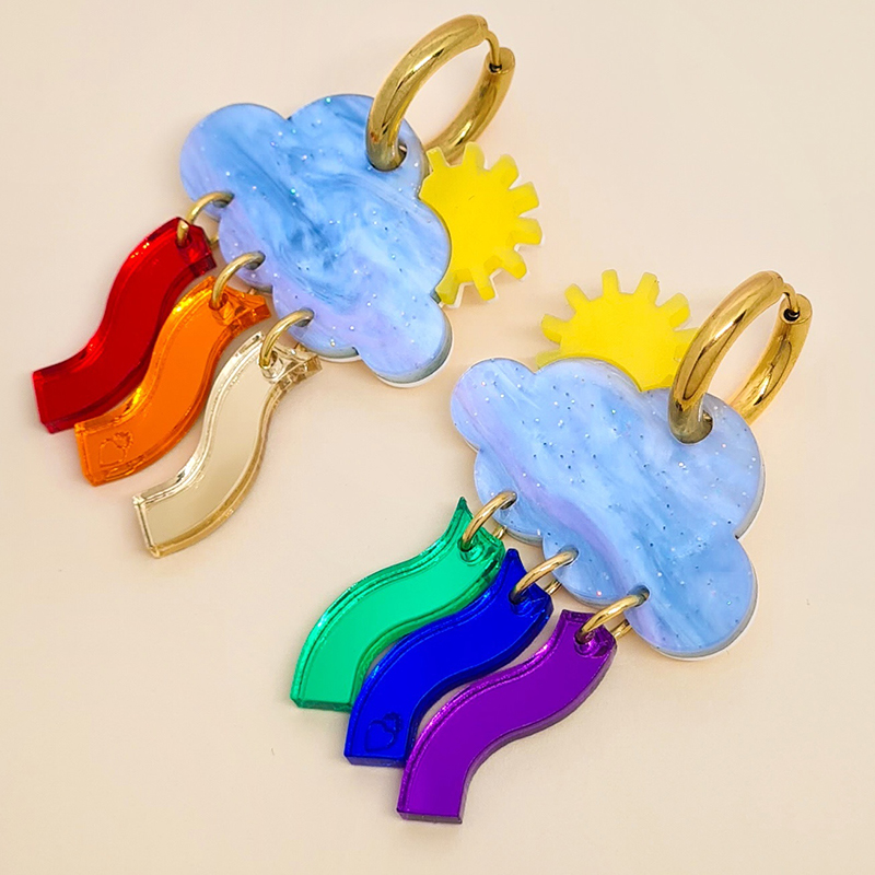 Entre pluie et soleil, le ciel joue à peindre des arcs-en-ciel secrets. Symbole d’espoir et de renouveau ces Créoles nuage soleil, sont un bijou lumineux aux reflets arc-en-ciel poétiques.