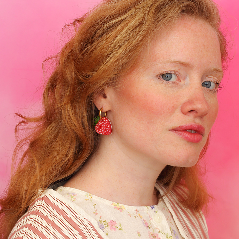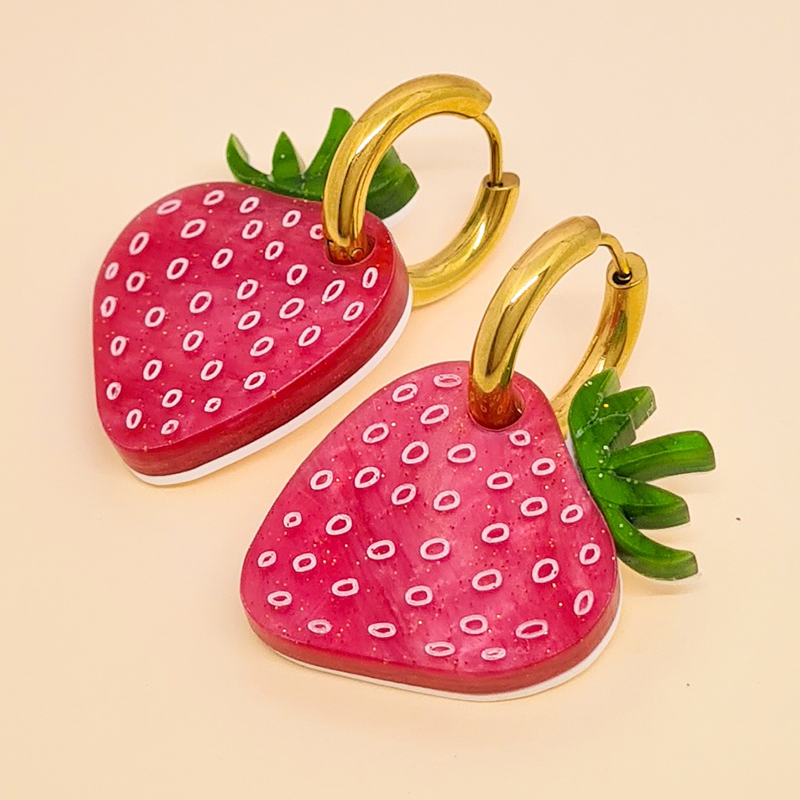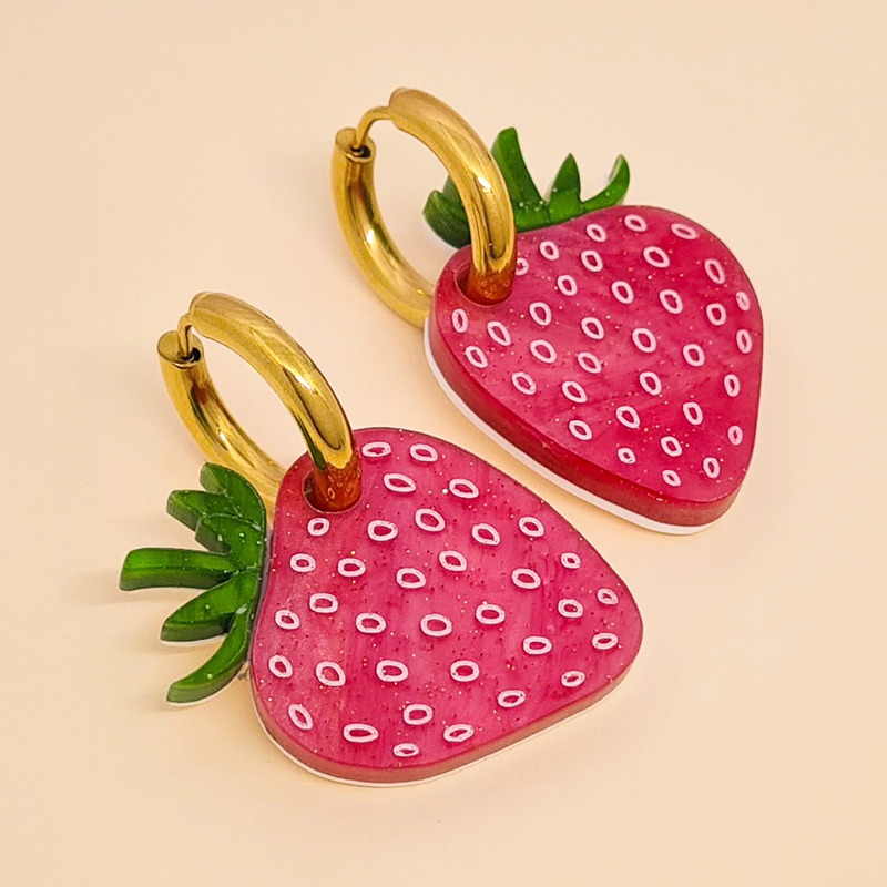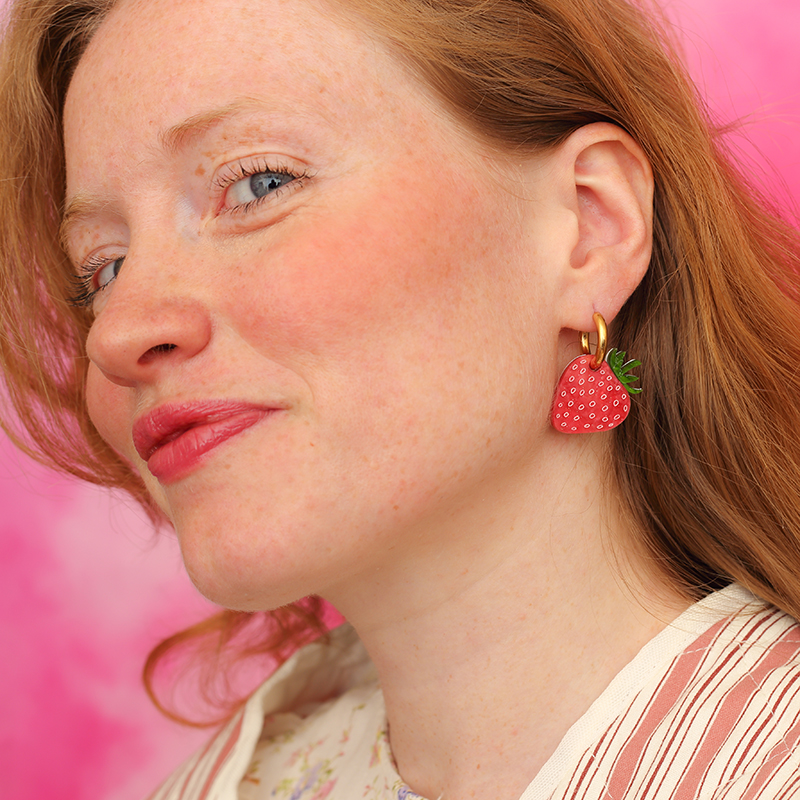 Deux fraises dansent au soleil, comme une promesse sucrée des beaux jours. Les créoles fraise, bijoux fruités et lumineux inspirés des jardins d’été.