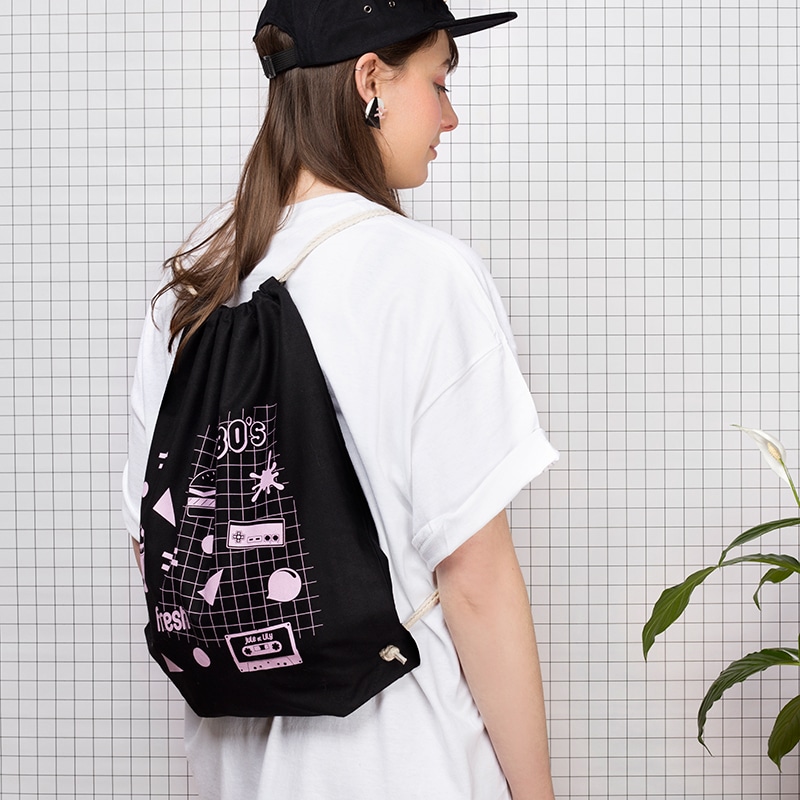 Couleur : Sac Noir / Cordon crème / Imprimé Rose